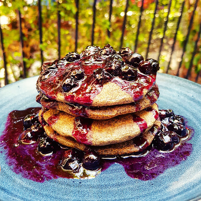 Vegan Buckwheat and Quinoa Pancakes with Blueberry Sauce